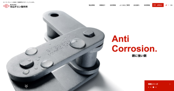 国内はもとより、海外にも根強くシェアを拡張している、産業用ローラーチエンの総合メーカーのコーポレートサイト実績です。