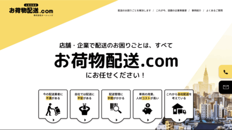 軽貨物の運送業のサイトリニューアル実績。コーポレートサイトであり、集客サービスサイトのハイブリッド型Webサイトです。