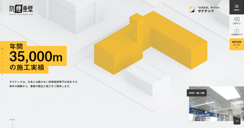 防煙垂壁の製造・販売・施工を事業とする企業。製品ブランディングのECサイト制作実績です。