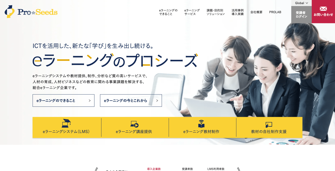 eラーニングシステムの開発、各種教材コンテンツの制作を主たる事業とする企業のサービスサイトリニューアル制作実績です。