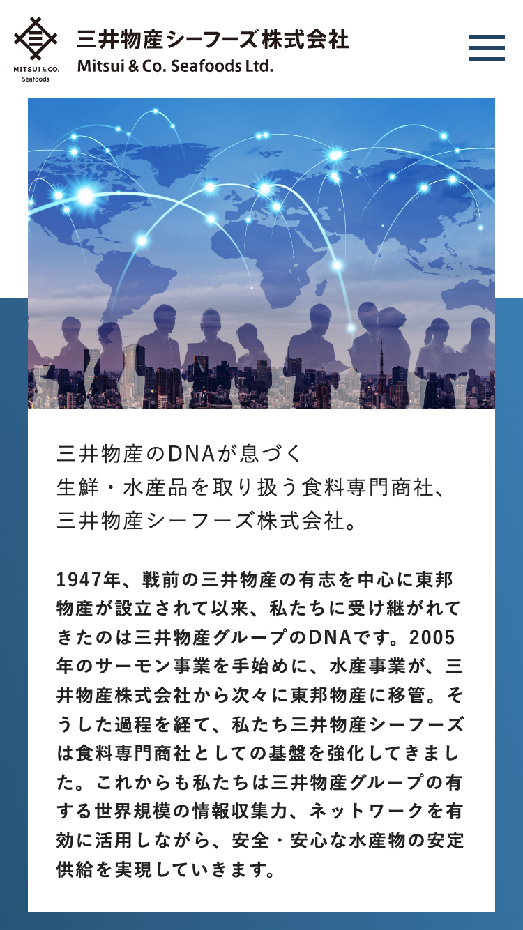 三井物産シーフーズ株式会社様・コーポレートサイト|SP版TOP