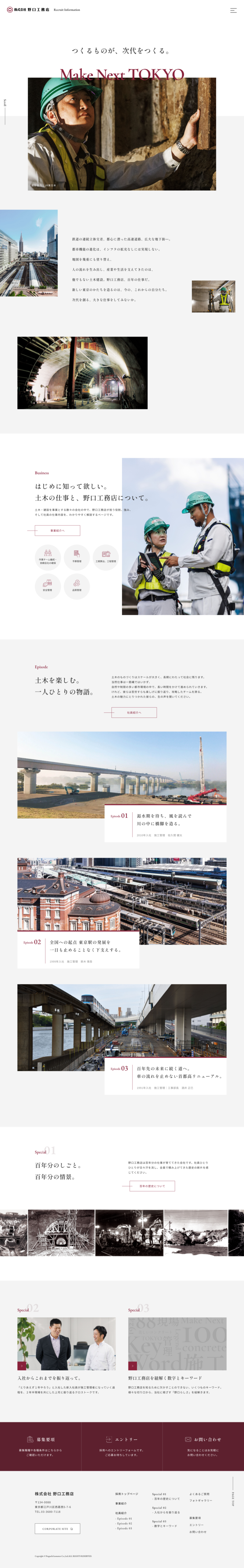 100年の歴史を持つ都市インフラ建設企業の採用サイト制作事例です。