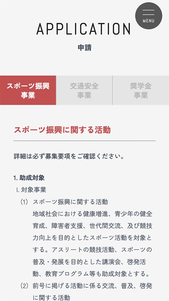 本サイトでは、スポーツ振興・交通安全・奨学金という