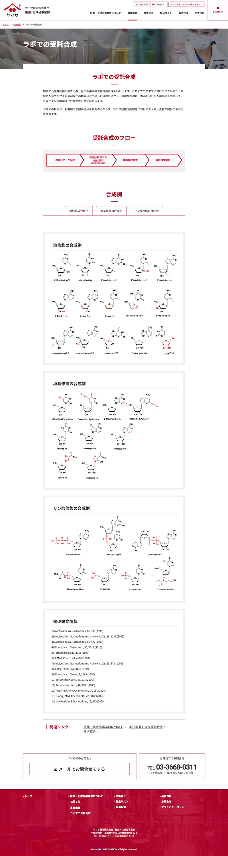 アクセス解析で見えた閲覧傾向と離脱要因を踏まえ、核酸ページの情報拡充、受託合成コンテンツの新設、専門用語や構造情報の見せ方を再設計。研究実績を単なる技術説明で終わらせず、用途・製造対応力・相談価値へ翻訳する導線を整えました。